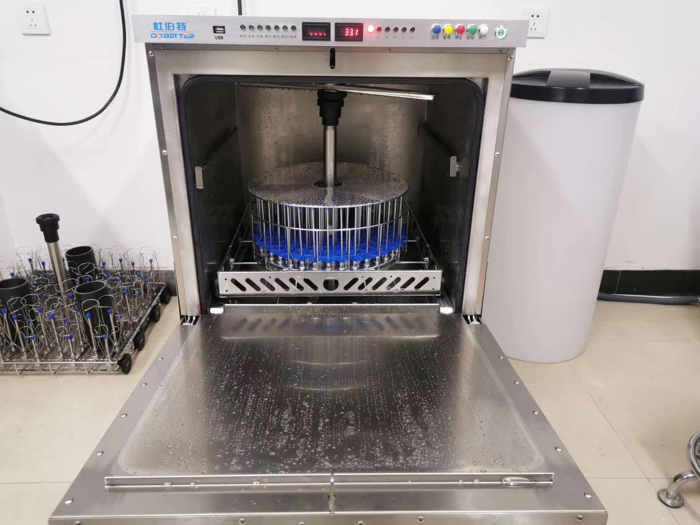 實驗室洗瓶機通過微電腦系統控制高壓水的清洗水溫、清洗時間、清洗次數和高壓空氣的干燥溫度、干燥時間等并配以專用的清洗劑、中和劑等對各種實驗室玻璃器皿、手術器械、牙科手術。電路板等物品內外表面的污漬,各種化學殘留進行360度全方位清洗、消毒、干燥處理。產品被廣泛應用于藥廠,科研所食品廠、化工企業的實驗室及生產部門、疾病中心實驗室、醫院口腔科、消毒供應中心,電子企業的生產部門等。
